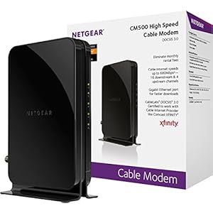 NETGEAR CM500-100NAR DOCSIS 3.0 Cable Modem with 16×4 Max Download speeds of 680Mbps. Certified for XFINITY by Comcast, Time Warner Cable, Cox, Charter & More(Renewed)