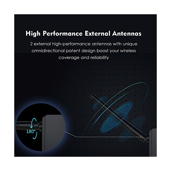 【AS POWERFUL AS YOU EXPECT】- 2*3dBi external high-performance antennas with unique omnidirectional patent design boost your wireless coverage and reliability; Independent HIGH POWER amplifiers provide significantly increased output power, which is up to 5x transmission power, ensure the wireless signal is strong enough to penetrate walls and other obstacles