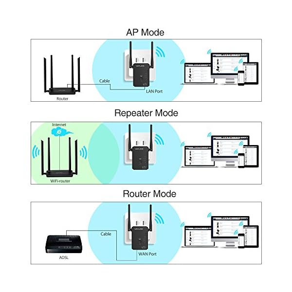 【MULTI OPERATION MODES】- It supports wireless Repeater, Router, and AP mode. Repeater mode is for extending wifi coverage of an existing wireless network. Router mode is for creating an instant private wireless network and enable multiple devices to share it. AP mode is for covering a wired network to a wireless network. You can switch between these 3 modes