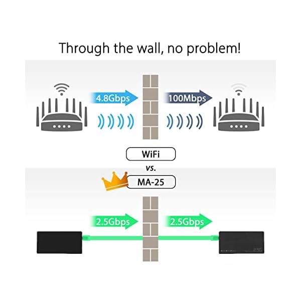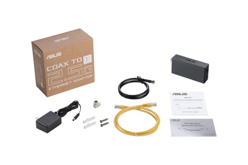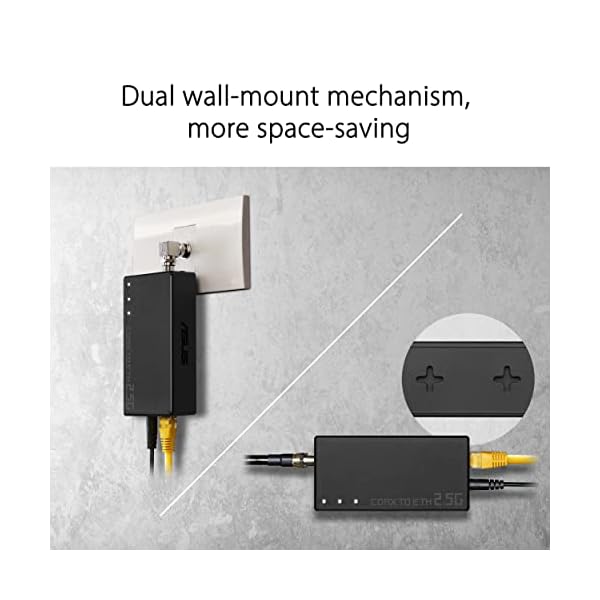 ASUS 2.5Gbps Ethernet Over Coax Adapter Starter Kit (MA-25 2 Pack), MoCA 2.5, High Speed Internet, Mesh backhaul, TV Streaming, MPS Security, Wall-mountable