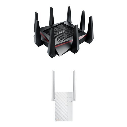 ASUS RT-AC5300 Wireless AC5300 Tri-Band Gigabit Router, AiProtection with Trend Micro for Complete Network Security & ASUS Repeater/Access Point/Media Bridge (RP-AC56)