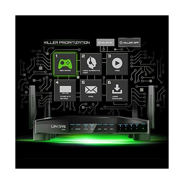 Linksys WRT Gaming WiFi Router Optimized for Xbox, Killer Prioritization Engine to Reduce Peak Ping and Latency, Dual Band, 4 Gigabit Ports, AC3200 (WRT32XB)
