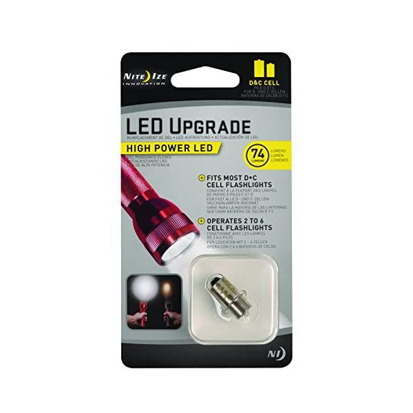 Nite Ize High Power LED Upgrade – LED Light Bulb for C and D Cell Flashlights – 74 Lumen Replacement Upgrade Bulb for Soft White Light – White