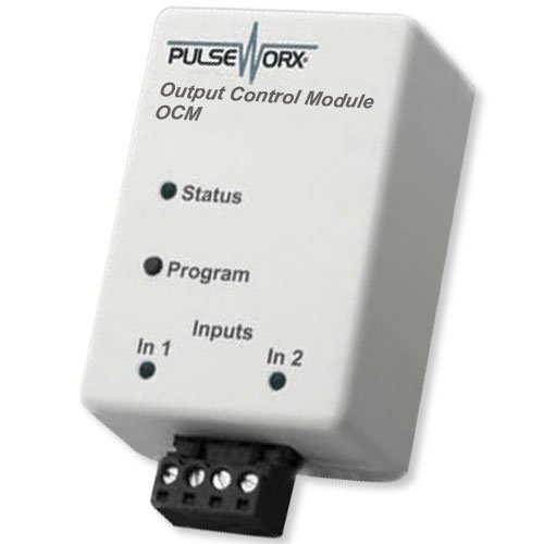 The OCM Output Control Module is a plug-in home automation isolated relay contact controller that transmits and receives UPB commands and status over existing power lines. The OCM is perfect for controlling valves, gates, garage doors, gas fireplaces, pumps, a large high voltage contactor and any device that is controlled by a relay. Simply plug the OCM into any standard wall outlet and wire the device to the controlled relay. The OCM is designed in a white enclosure with two completely isolated Class 2 contacts rated at 8 Amps. A mounting tab is included at the top to be screwed into the receptacle for added security. The OCM will accept powerline commands from any UPB-compatible transmitter such as the PulseWorx Keypad Controllers, Timed Event Controller, Interface Modules, Approved Third-Party Controllers, Touch Screens, and WS1s. Each channel of the OCM can be a member of up to 16 Links/Scenes with the capability to store a pre-set relay state (OPEN or CLOSE). Each preset state can easily be adjusted by the homeowner using the innovative PulseWorx manual programming method. Each channel output can be configured to transmit status changes and inform the rest of the network when the timed auto-off function has automatically turned each relay off. This allows the OCM to remotely control other devices or update indicators (LEDs on our keypads). Like all PulseWorx devices, the OCM can be initially configured using PCS’s free UPStart Setup Software tool. UPStart enables configuring such parameters as Network Name, Network ID, Unit ID, Room name, Device name, default on light levels, fade rates, LED colors, dimming disable, auto shut-off time, etc. as well as test the operation and communication strength of the device. UPStart has the option to configure an entire network off-line and then download the information into the devices after they are installed in the home.