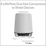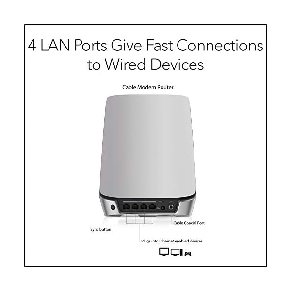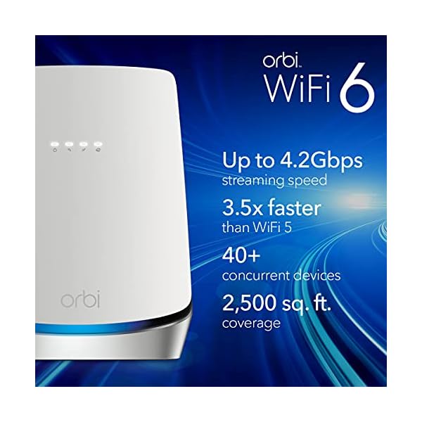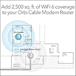 Integrated cable modem and WiFi 6 satellite system provides high-performance WiFi coverage for up to 5,000 sq. ft. and 40+ devices. Expand coverage by 2,500 sq. ft. with each optional Orbi Mesh WiFi 6 satellite (sold separately)