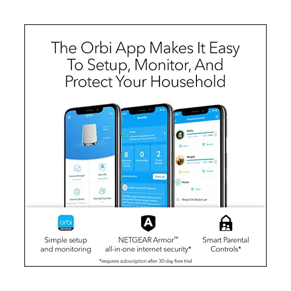 Sets up in minutes with the Orbi App; easily manage WiFi settings, test internet speed, and monitor data usage