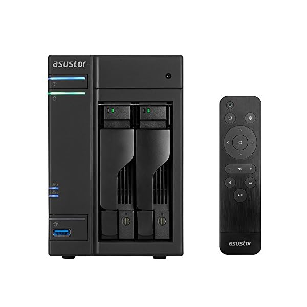 Asustor AS6202T + AS-RC13 Remote | Network Attached Storage | 1.6GHz Quad-Core, 4GB RAM | Personal Private Cloud | Home or Business Data Media Server (2 Bay Diskless NAS)