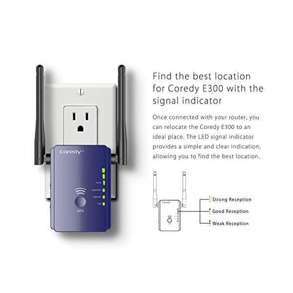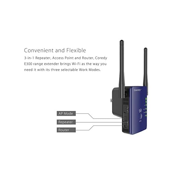 The Coredy E300 Universal WiFi Range Extender is designed to conveniently extend the coverage and improve the signal strength of an existing wireless network and eliminate dead zones. Small size with better performance and wider coverage! Works with any standard router or gateway.