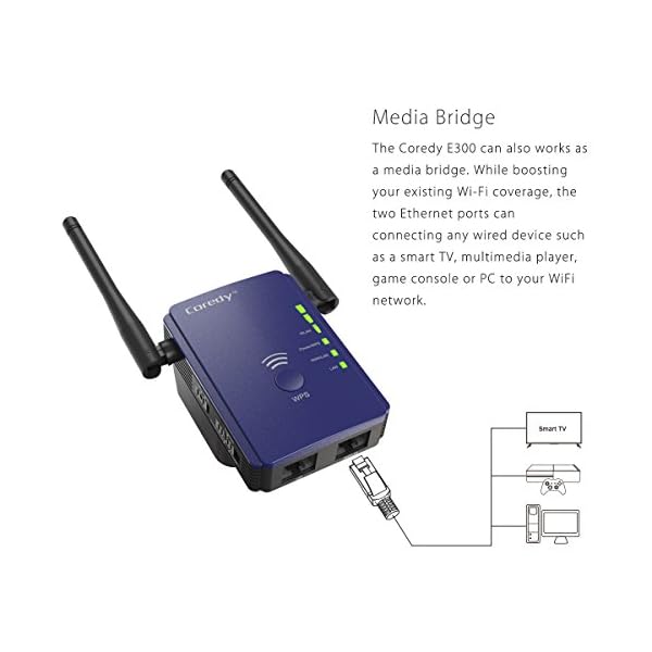 CONNECT WIRED DEVICES: While boosting your existing Wi-Fi coverage, the two Ethernet ports can connect any wired device such as a smart TV, multimedia player, game console or PC to your WiFi network, work as a media bridge