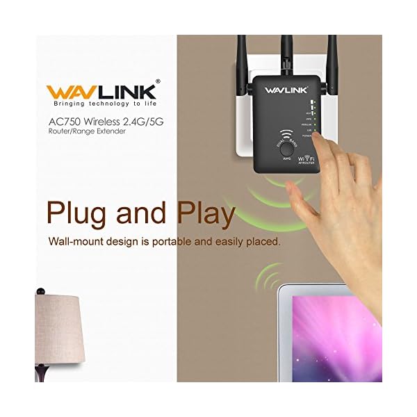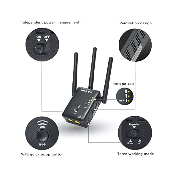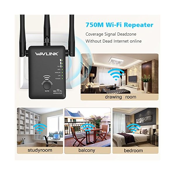 Wavlink AC750 WIFI Repeater Range Extender Mini Wireless Router Wifi Booster Signal Amplifier Dual Band with 3 External Antennas- Black