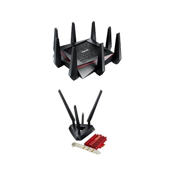 ASUS RT-AC5300 Wireless AC5300 Tri-Band Gigabit Router, AiProtection with Trend Micro for Complete Network Security & ASUS Dual-Band Wireless-AC1900 PCI-E Adapter (PCE-AC68)